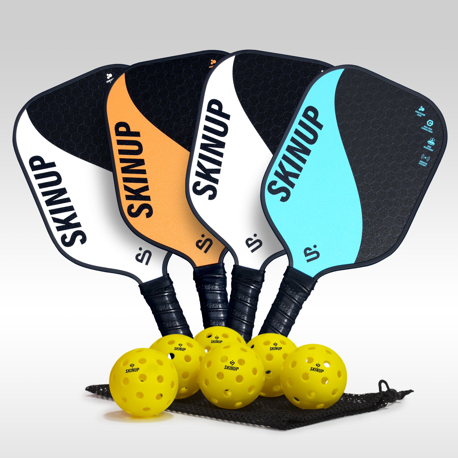 Pickleball Kit: 4 Adult Pro+ Rackets with 6 Balls