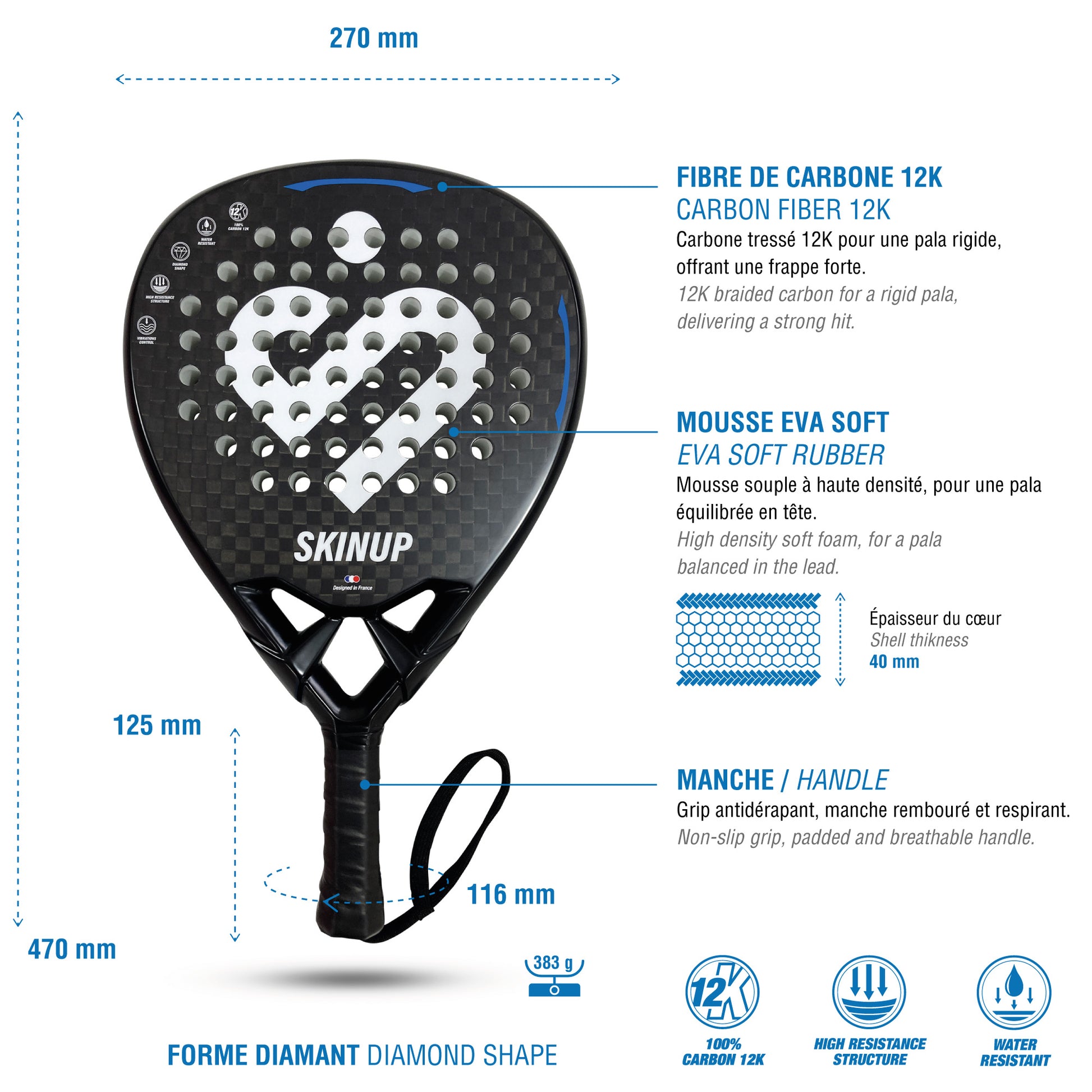 Het 12K Pro Carbon padelracket is een high-end model, ontworpen voor de meest veeleisende spelers. Dit racket is gemaakt van 12K koolstofvezel, een van de sterkste en lichtste vezels op de markt. Het valt op door zijn uitzonderlijke stevigheid en lichtheid . Het 12K carbon frame zorgt voor een hoge duurzaamheid en langere levensduur, en biedt daarnaast opmerkelijke wendbaarheid op de padelbaan.