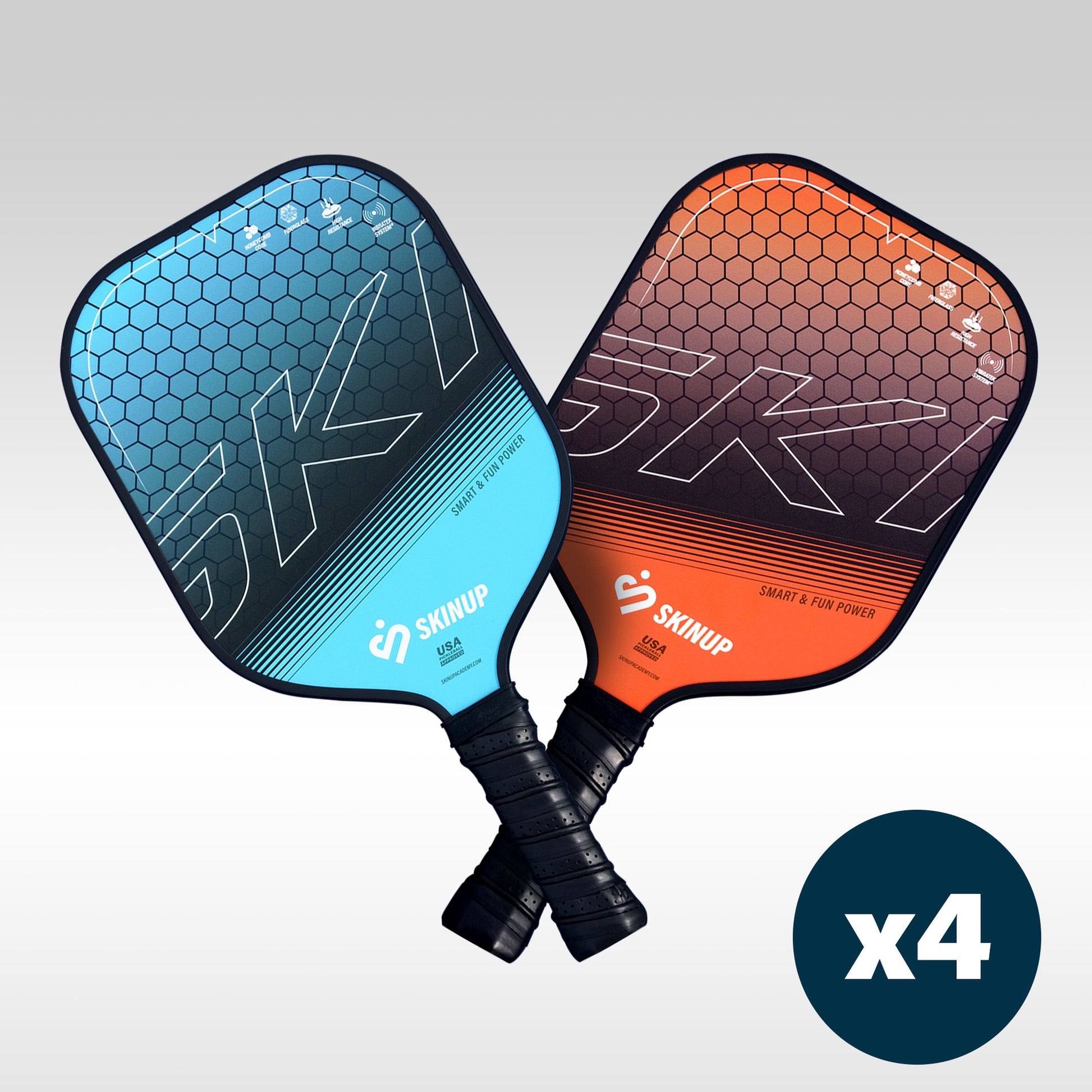 De Smart & Fun 8-paddle set is ideaal voor beginners en biedt alles wat je nodig hebt om pickleball te ontdekken. Met 4 blauwe en 4 oranje rackets kunt u in groepsverband spelen en toch profiteren van een uitstekende prijs-kwaliteitverhouding.